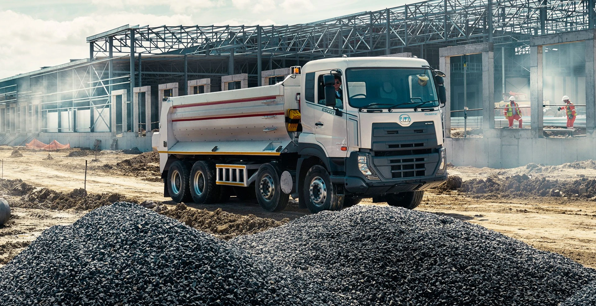 La Nueva Volqueta 20m³ CGE440 es una volqueta / camión 8×4 de la reconocida marca UD Trucks que está especialmente diseñada para trabajo duro en la construcción y/o minería. Viene Equipado con un motor de 11 litros con 440hp, con un torque de 2040 Nm.